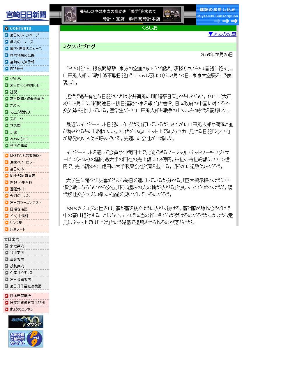 最近はインターネット日記のブログが流行しているが、さすがに山田風太郎や荷風と並び称されるものは聞かない。20代を中心にネット上で知人だけに見せる日記「ミクシィ」が爆発的な人気を呼んでいる。先週この会社が上場した。