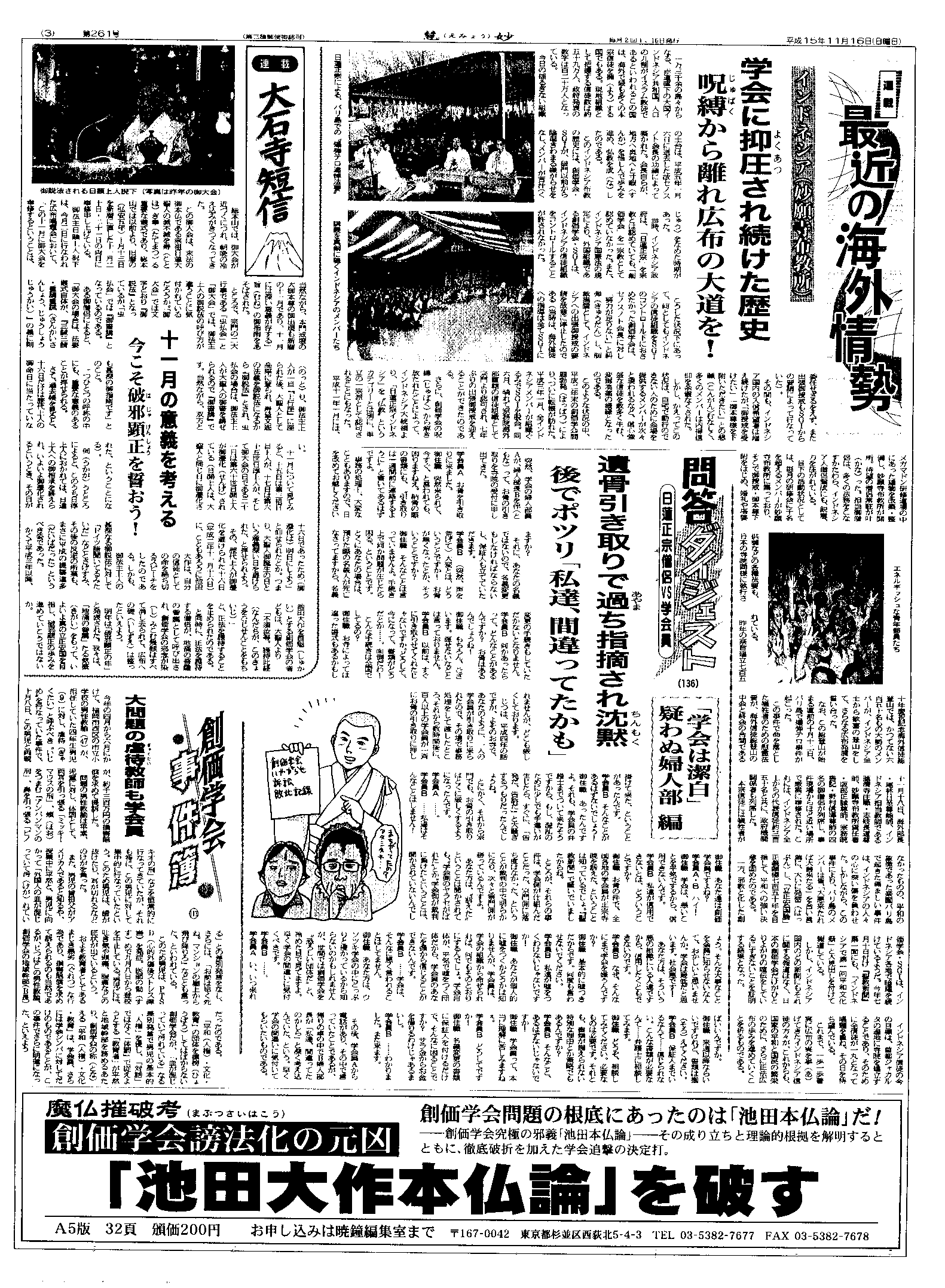 本文中で書いていた「学会員報道に関する慧妙さんへの質問状」については、結局黙殺されました・・・