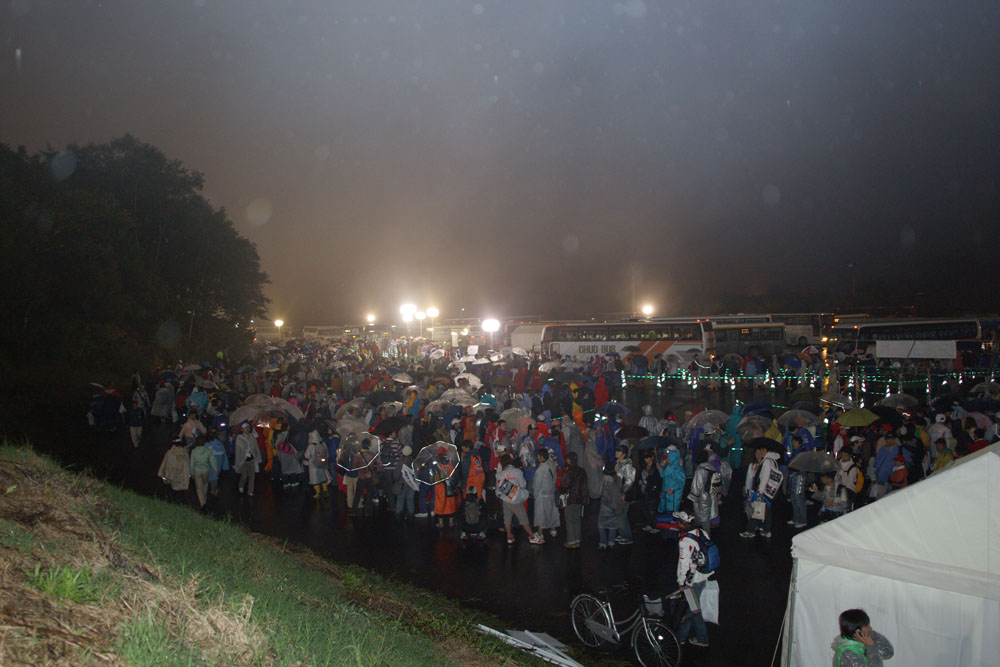 確かに仮設トイレは長蛇の列だったので仕方がないが、バスの臭いは限界だったな。