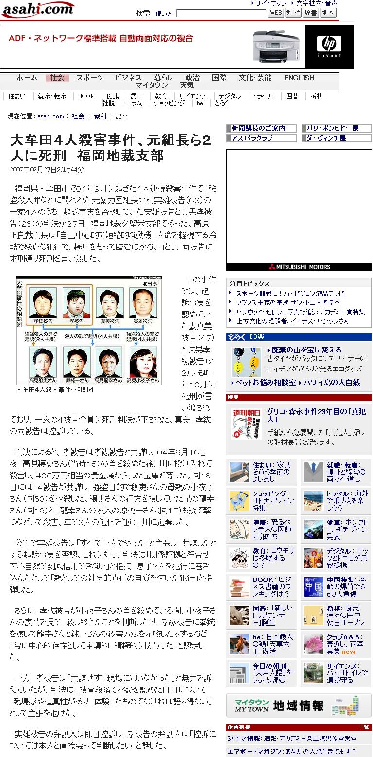 大牟田鬼畜家族 父・母・兄・弟の4人家族全員に死刑判決 福岡地裁(2007年02月27日)