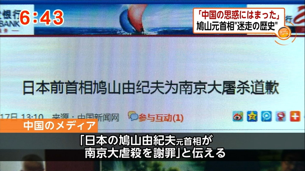 ・【政治】 鳩山元首相 「南京大虐殺は事実。『大虐殺なかった』と言う人は虐殺記念館に来て話せばいい」
