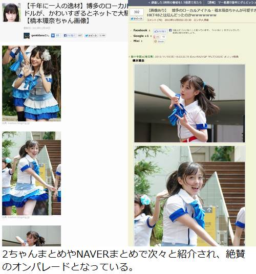 そんな橋本、ひいてはRev.from DVLの存在を、今回2ちゃんねるやTwitterで話題になったことがきっかけで知った人も多いようで、 「福岡美人の産地すぎる」「ローカルアイドルのレベルじゃない!」「天使すぎるだろww」「一瞬で激オシ」「HKTとはなんだったのか」 「恋に落ちた……」などなど、とにかく否定的な声は皆無、ほぼ絶賛の声で埋め尽くされている状態だ。