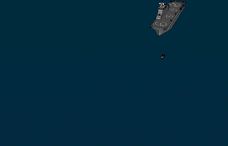>>輸送艦です。そして、手前に写っているので大きく見えるんですが実際には7.6mの全長の釣り船です。