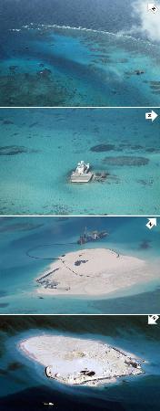 中国が埋め立てをし、陸地として拡張している実態を示す写真4枚を公開した。
