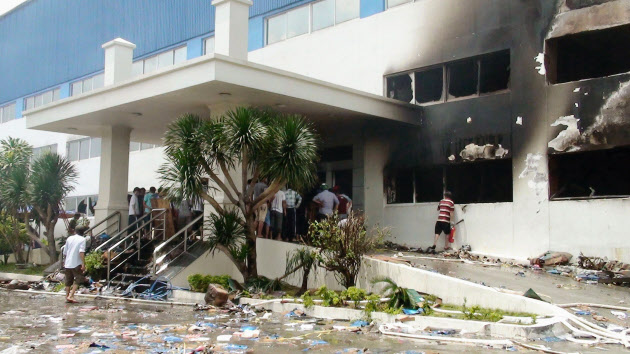 英国放送協会(BBC)によると、南部の工業団地では、少なくとも外資系の15の工場で放火があった。