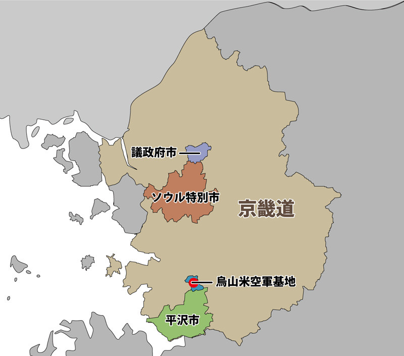 画像)平沢市に隣接する烏山市には在韓米空軍の主力が展開する基地がある。
