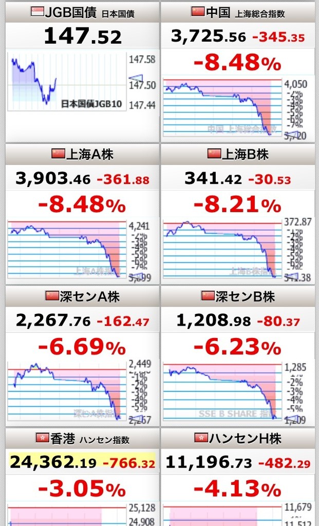 【緊急速報】中国株・上海総合指数が超絶大暴落中