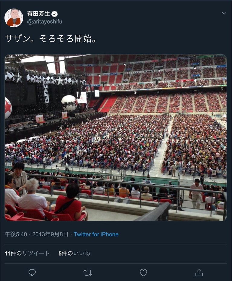 立民・有田氏、サザンコンサートの写真投稿で批判(産経新聞) - Yahoo!ニュース https://t.co/T2A7W7GJdC