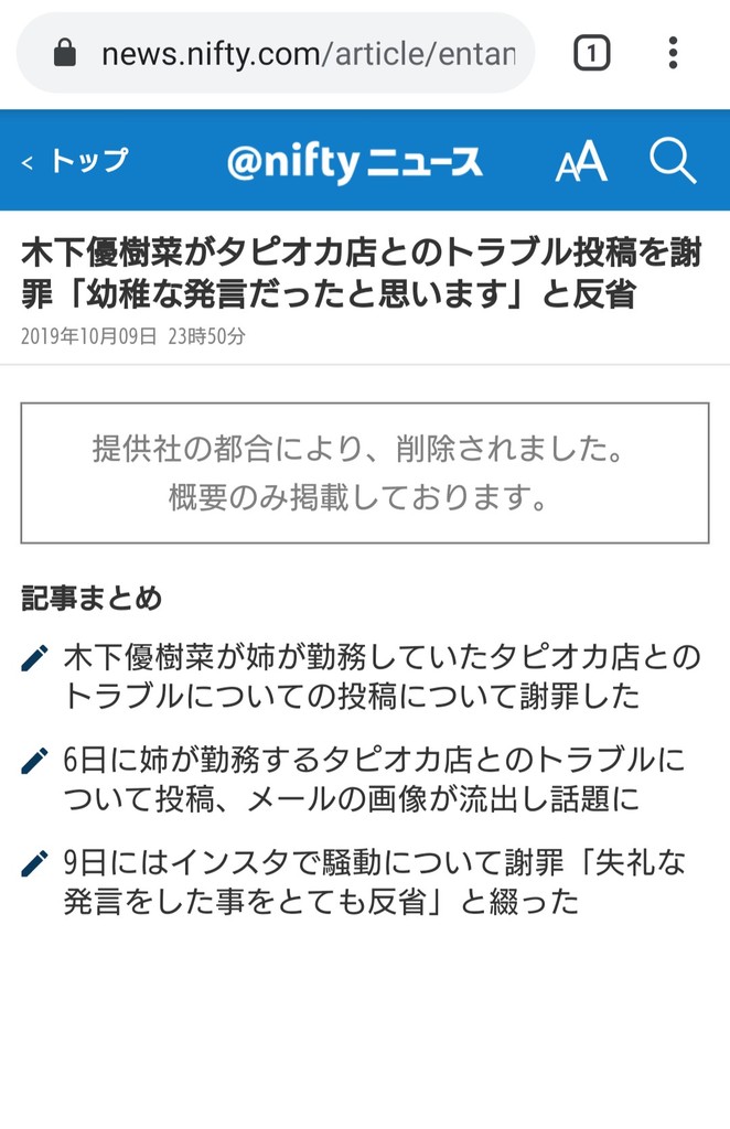 【木下優樹菜タピオカ騒動】店舗経営者「木下優樹菜から週刊誌リークし弁護士介入させ所属事務所総出でやると脅された」→正義マスコミ擁護記事一斉削除