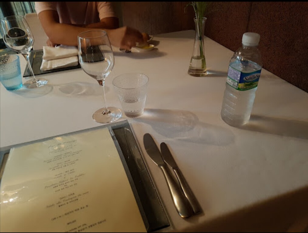 ていうか照明も終わってんな、明かり斜めだけかよ。料理を美味そうに見せる配慮がない。水のグラスも何で色が違うんだよ。そもそもヴォルビックのペットボトルそのまま置いてんじゃねーよwww