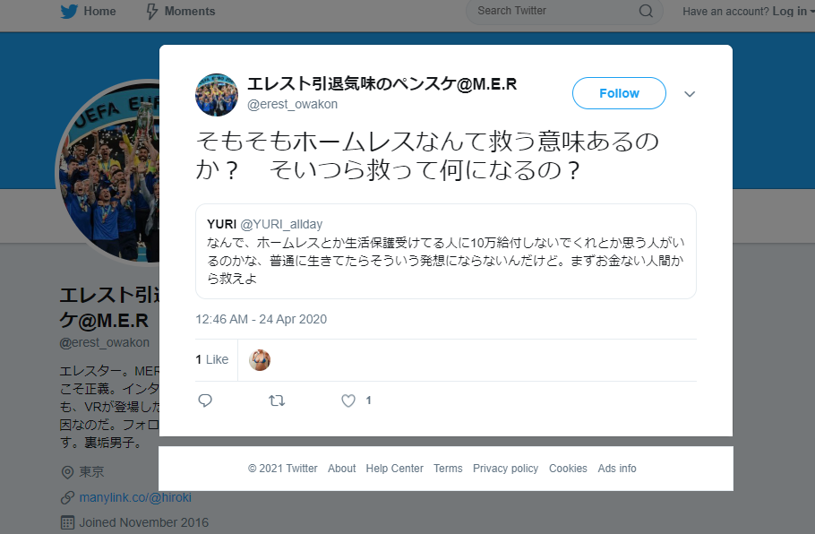 そしてSNSでこれをしたとて鬱屈を晴らす効果はないだろ。
