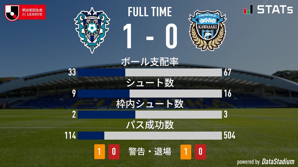 川崎F負けた!昨年11月以来公式戦43戦ぶり ボール保持率7割超えも