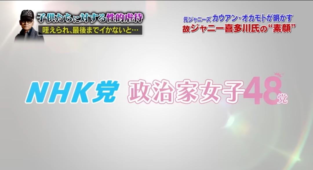 政治家女子48党(旧NHK党)がNHK総合で衝撃の政見放送! 「元ジャニーズJr.の性的被害」の特集VTRを政見放送として9分間流す… 視聴者驚き [冬月記者★]