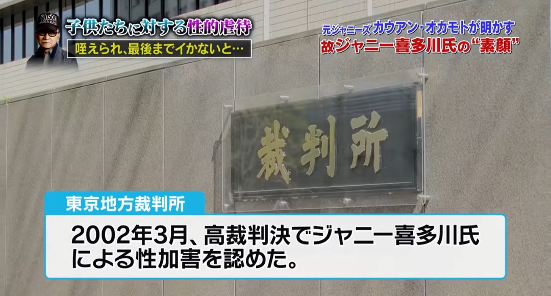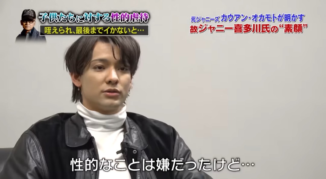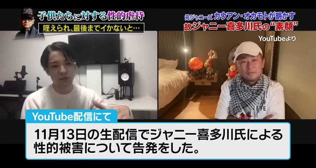 内容はオカモト氏が喜多川氏から性的被害を受けたと語るもので、ニュース番組風のテロップがつけられるなどの編集がされていた。約9分間だった。