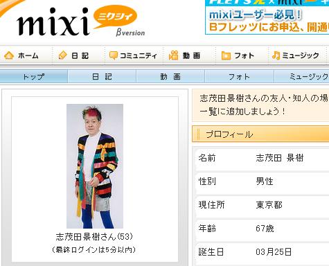 2006年8月より「私の私性活を覗いてみませんか?」みたいな日記を新しくミクシーでIDを作り直して「友人まで公開」で日記を再スタートしました。※mixi日記は「友人まで公開」です。