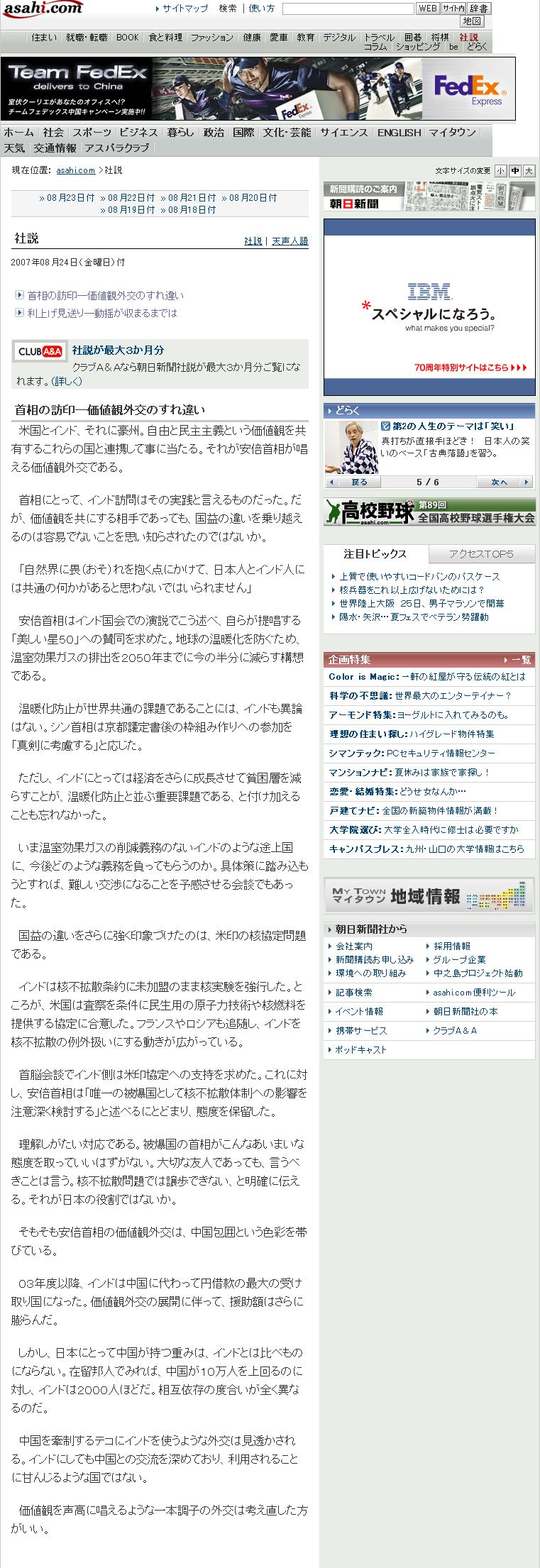 2007年08月24日(金曜日)付